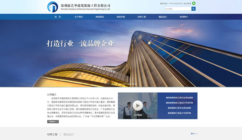 深圳新藝華建筑裝飾工程有限公司成立于1993年11月,注冊資金5000萬,是國家住建部核定的建筑裝飾裝修工程設計甲級與施工壹級、建筑幕墻工程設計甲級與施工壹級資質企業(yè),同時具有